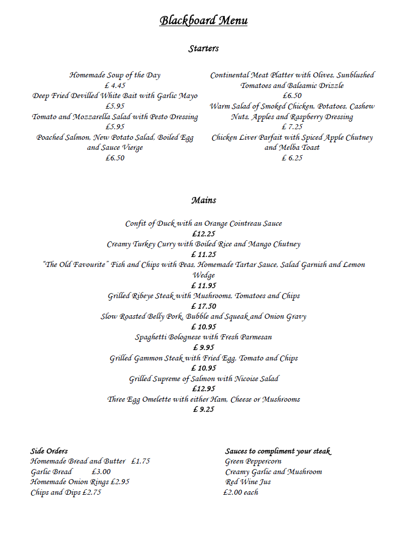 | Home : About : Bedrooms : History : Where we are : Contact us : Press : Book online : Our rooms : Restaurant : Starters : Catch Of The Day : Main Courses : Sweets : Blackboard Menu : Sunday Lunch : Lounge |