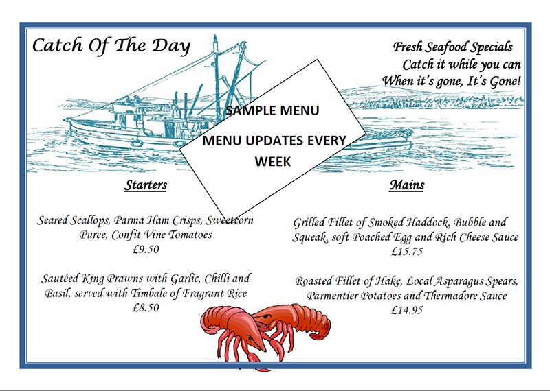 | Home : About : Bedrooms : History : Where we are : Contact us : Press : Our rooms : Restaurant : Starters : Catch Of The Day : Main Courses : Sweets : Blackboard Menu : Sunday Lunch : Lounge : Courtyard : Book Online : Our Reviews : Courtyard : Book Online : Our Reviews |